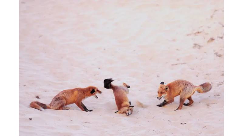 Bu kızıl tilkiler dans yeteneklerini sergileyerek çok eğleniyorlardı.