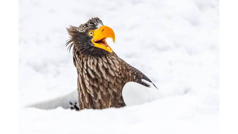 Bu Steller deniz kartalı Japonya’da karda görüntülendi.