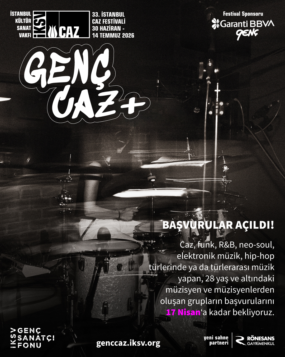 İstanbul Kültür Sanat Vakfı (İKSV) tarafından Garanti BBVA sponsorluğunda 30 Haziran – 14 Temmuz tarihleri arasında gerçekleştirilecek 33. İstanbul Caz Festivali’nin genç caz müzisyenlerini destekleyen programı Genç Caz+ için başvurular başladı.