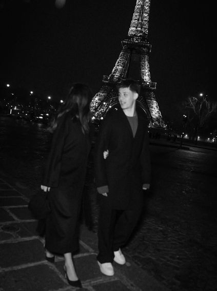 Çift, Eyfel Kulesi’nin önünde romantik pozlar verdi.