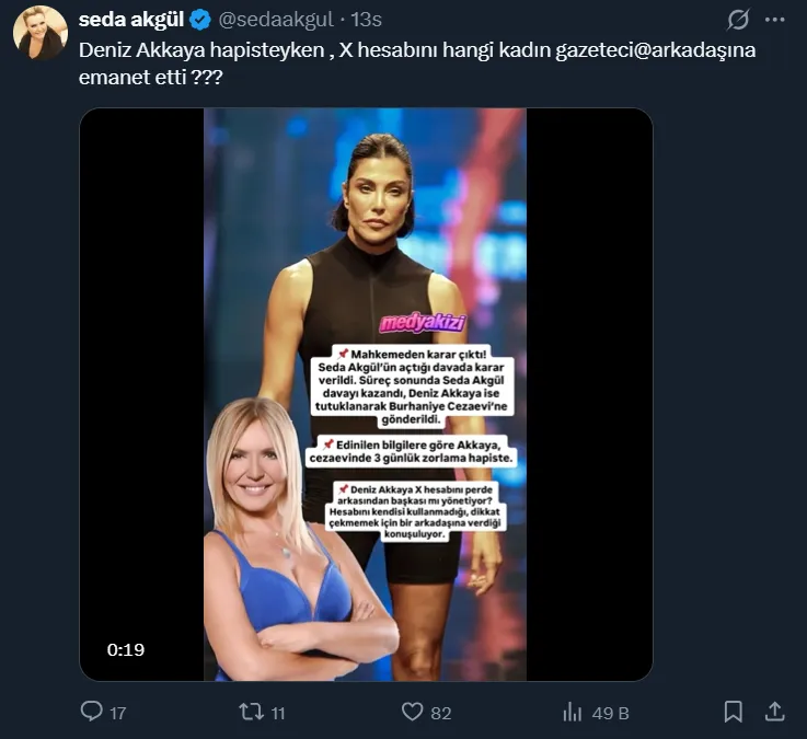 Bu kararın ardından Seda Akgül, Akkaya’nın tutuklanarak Burhaniye Cezaevi’ne gönderildiğini, dikkat çekmemek içinde sosyal medya hesabını bir arkadaşına verdiğini iddia etti.
