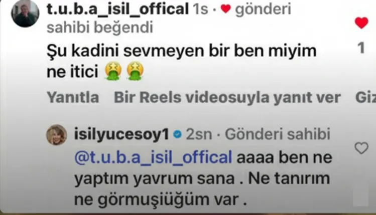 3. Işıl Yücesoy’dan takipçisinin yorumuna yanıt: Ben ne yaptım yavrum sana?