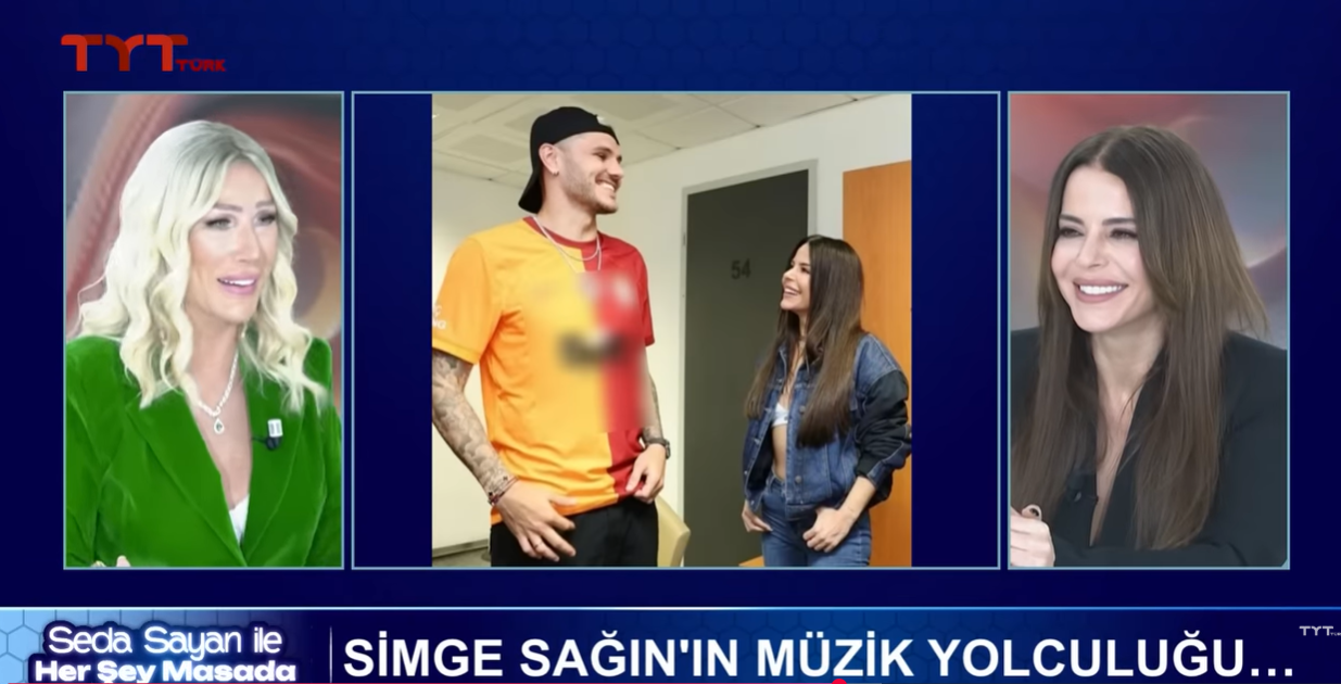 ‘Aşkın Olayım’, ‘Yankı’, ‘Öpücem’ şarkılarıyla popülerliğini artıran Simge Sağın, Seda Sayan‘ın sunduğu ‘Seda Sayan ile Her Şey Masada’ programına konuk oldu. Sağın, programda, Icardi ile arasında ‘Aşkın Olayım’ şarkısının ardından bir bağ oluştuğunu söyledi.